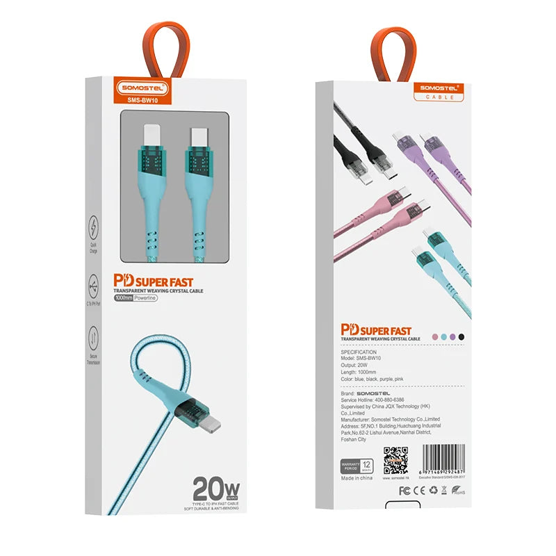 Cable de Carga Rápida de Cristal Transparente de PVC